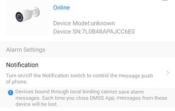 Open DMSS on your smart phone and select the camera you want notifications for.