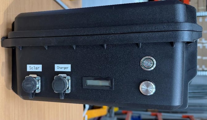 2. On the left side of the Incident Watch Battery is the solar and charger sockets.