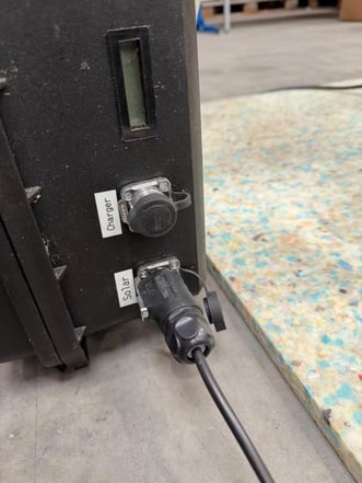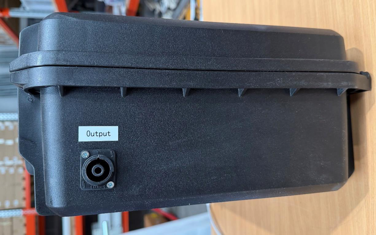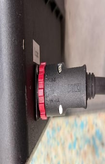 5. Place one end of the power cable into the battery unit, ensure that it is unlocked before plugging it in, then once plugged in move the dial over to lock.
